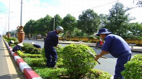- Cắt tỉa cành cây, tưới, bón phân, chăm sóc cây xanh.